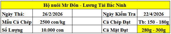 Trại hộ nuôi Mr Đôn tại Bắc Ninh là khách hàng thân thiết của Thái Sơn Fish và liên tục ủng hộ sản phẩm Cá Chép Thái Sơn liên tục trong 3 năm qua. Và các năm vừa qua kết quả khi lên CÁ CHÉP THỊT thì đều đạt kết quả tốt.