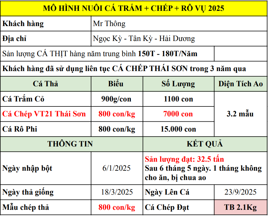 Năm nay, là năm liên tiếp thứ 2 Chú Thông sử dụng sản phẩm CÁ CHÉP VT21 THÁI SƠN GIỐNG MỚI và cho ra kết quả rất tuyệt vời.